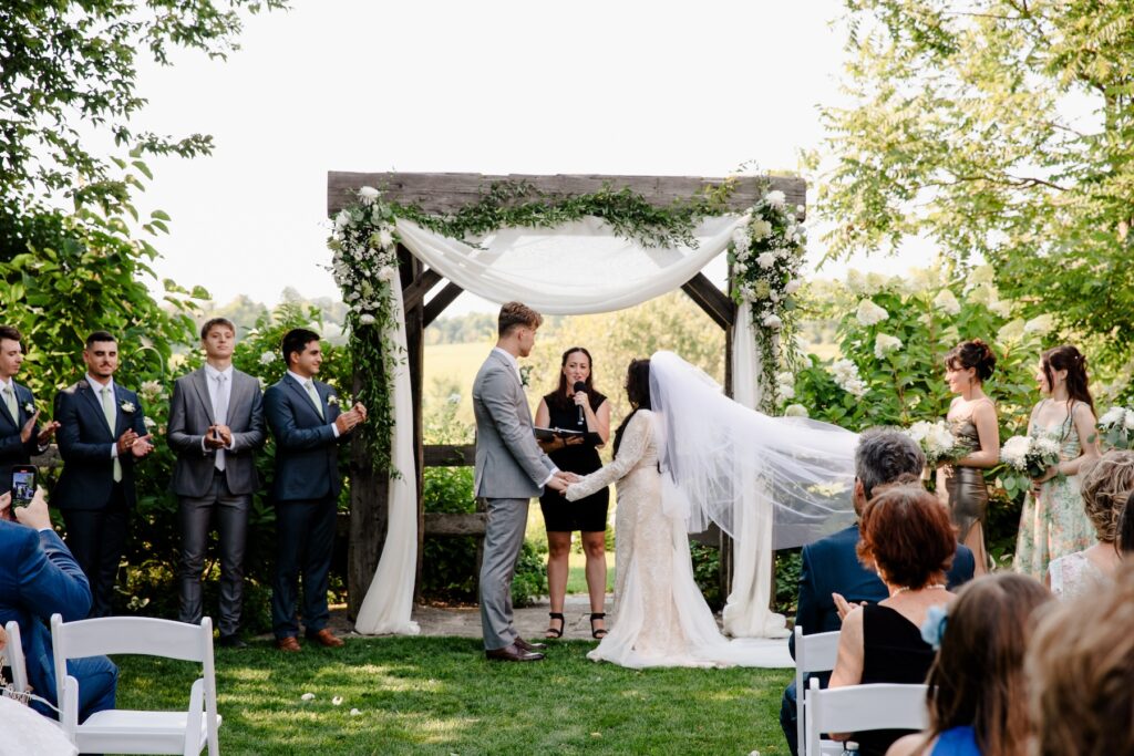Mariya and David’s August wedding was full of love, laughter, and beauty. They brought their picture-perfect vision to life at Century Barn Weddings, blending Jewish traditions with a relaxed outdoor setting outside of Peterborough Ontario. From the stunning florals to the thoughtful wedding favours, every detail was full of personality and care.