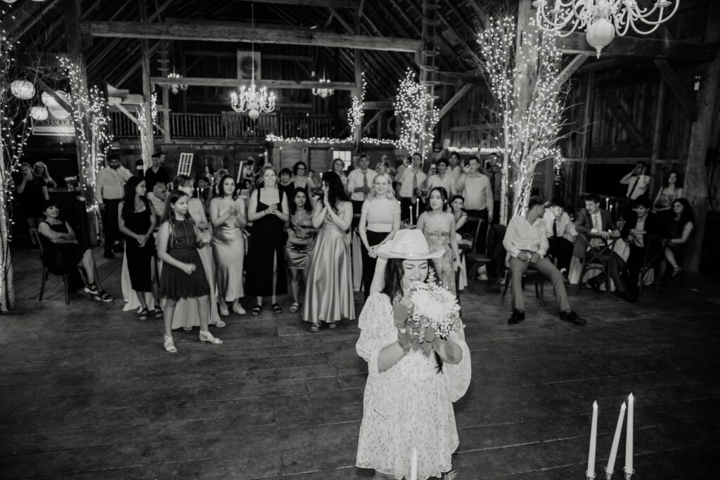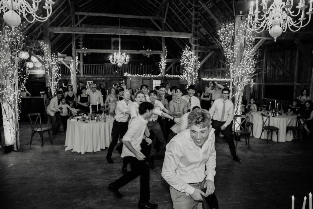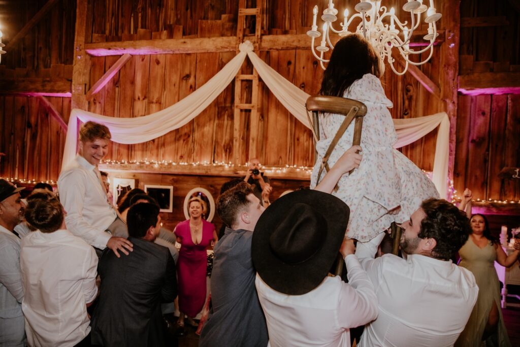In a celebration that honored the couple’s Jewish heritage, the Hora dance brought an electrifying energy to the reception. As music filled the barn, Mariya and David were lifted high on chairs by their guests, surrounded by a spinning circle of family and friends, hand-in-hand, laughing, and dancing with uncontainable joy. It was a moment of pure celebration — a highlight that echoed with love and tradition.